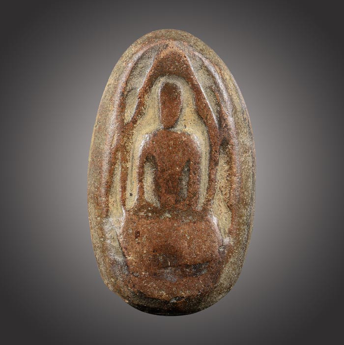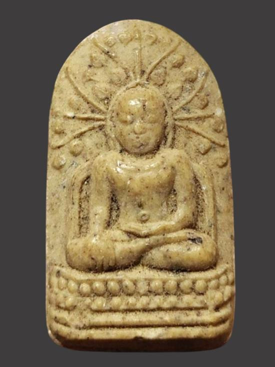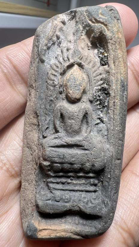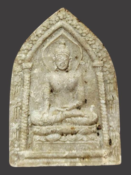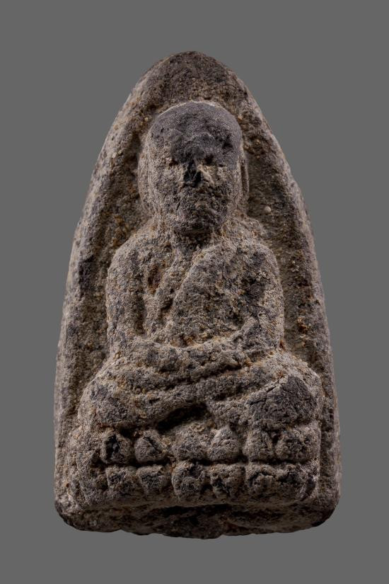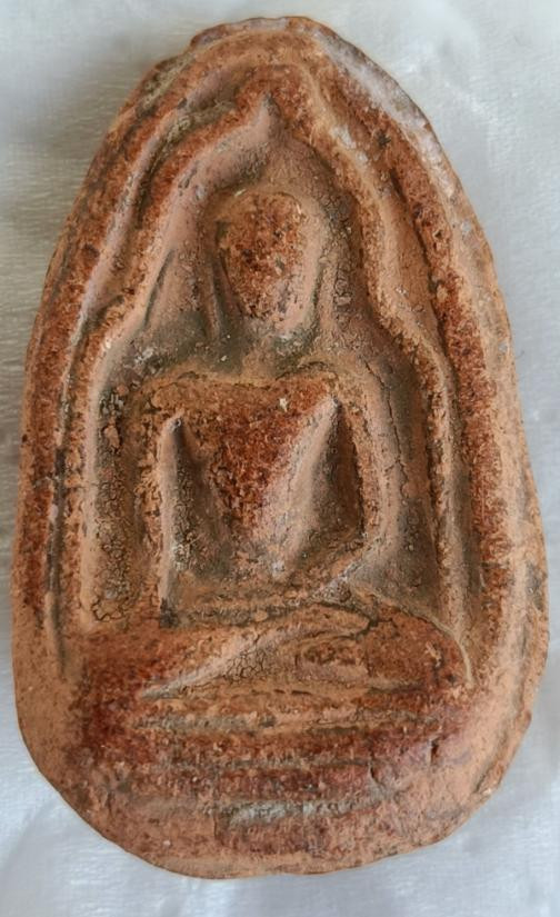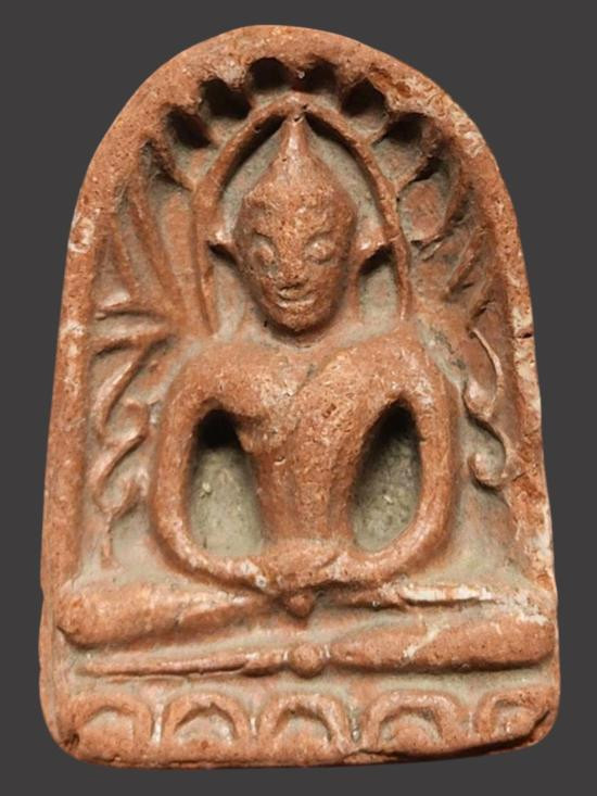 พระพิมพ์นั่งบัว ฟันปลา หลังจาร เนื้อดิน ไม่ทราบที่