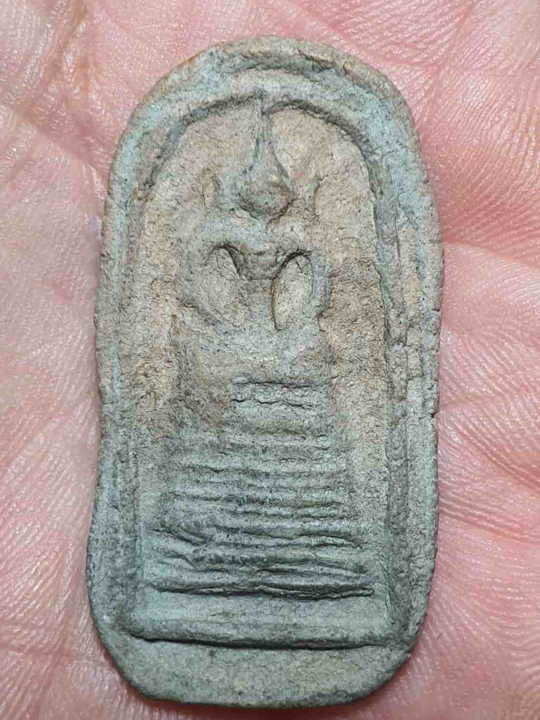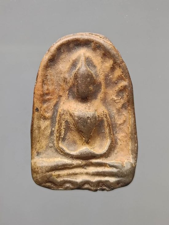 พระเนื้อดิน พิมพ์พระรอด ไม่ทราบที่ *เลี่ยมเงิน ยกซุ้มหัวสิงห์ แกะลาย |