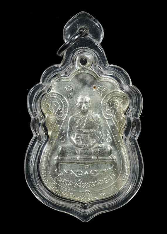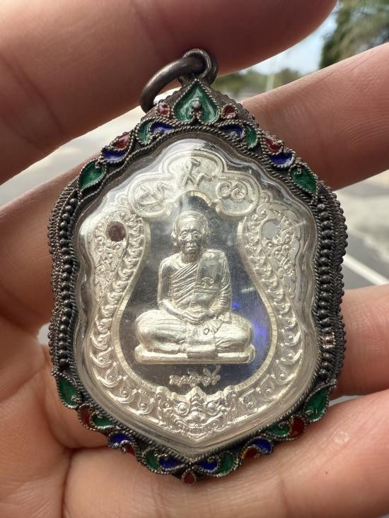 เหรียญหลวงปู่บุญหนา วัดป่าโสตถิผล จ.สกลนคร ปี2554 เลข 22 เนื้อเงิน เลี่ยมเงินลงยา |