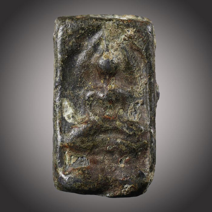 (วัดใจ)พระหล่อโบราณ พิมพ์พระขุนแผน (ไม่ทราบที่)เนื้อตะกั่วเก่า มีอายุ ขนาดพระฐาน 2.2cm สูง 2.6 cm |