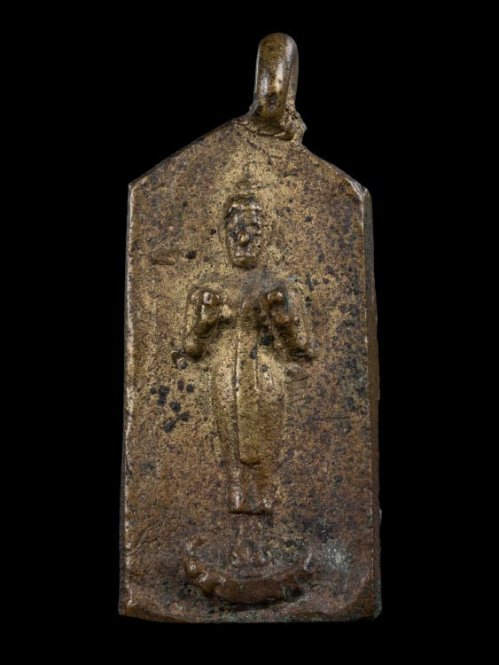 พระหล่อเนื้อชินตะกั่ว พิมพ์ท่ากระดานเล็ก ไม่ทราบที่ไม่ทราบรุ่น ขนาด 1.6 * 2.3 ซม |