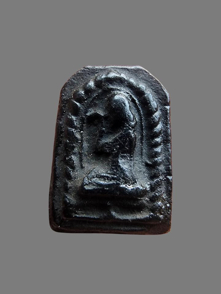 (เคาะแดง1900) +บัตรสมาคม นางพญา หลวงพ่อกวย เนื้อผงน้ำมันดำ |