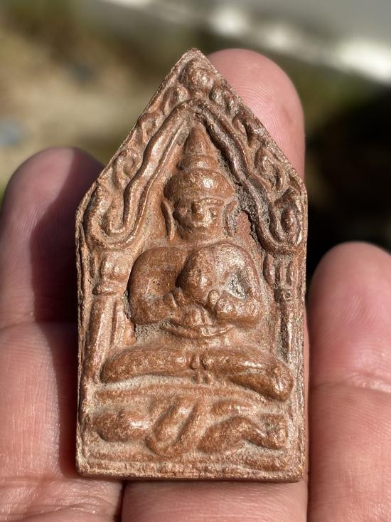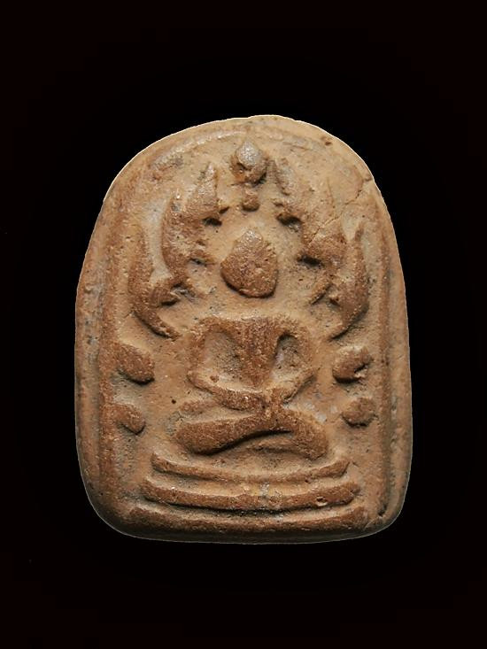 พระพิมพ์ซุ้มนาคปรก หลังมีจาร เนื้อดินแห้ง |