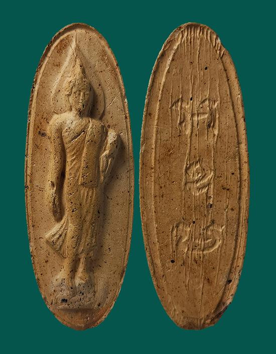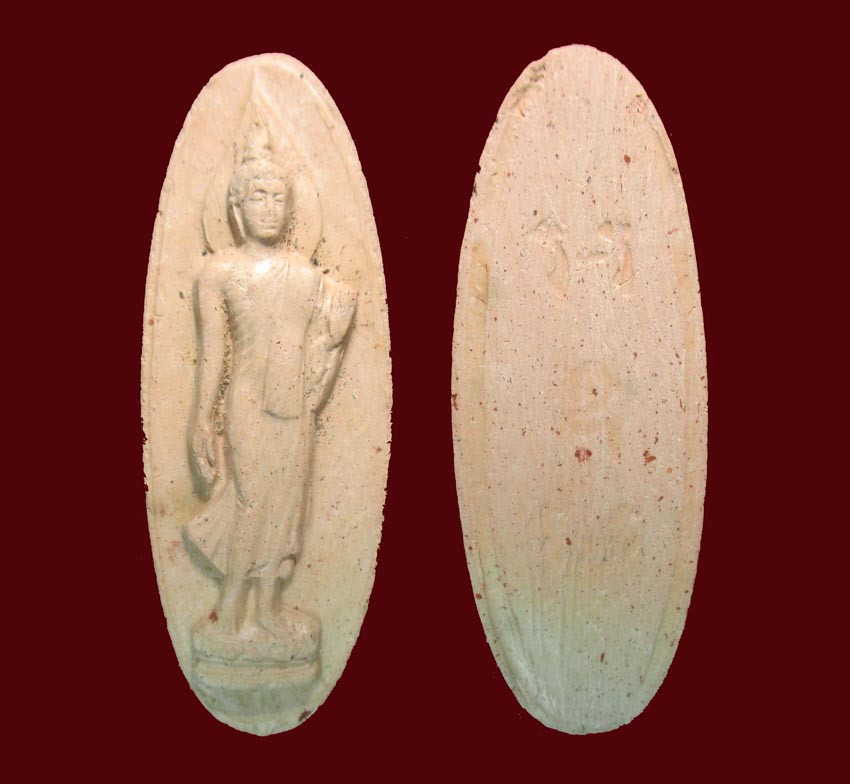 พระผงน้ำมัน พิมพ์พระสังกัจจายน์ (พระฉิม) กรุวัดชนะสงคราม เนื้อผง ปี 2491 กรุงเทพฯ |