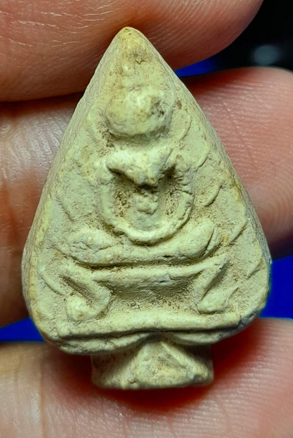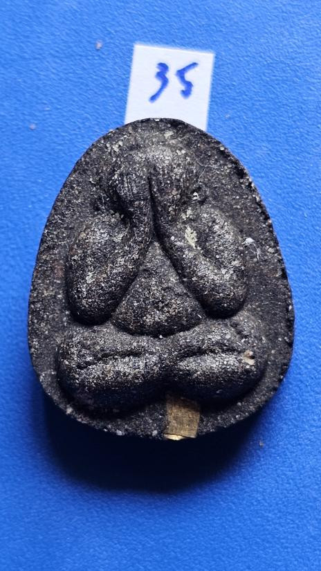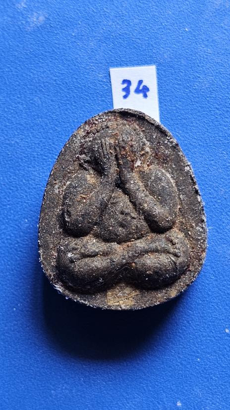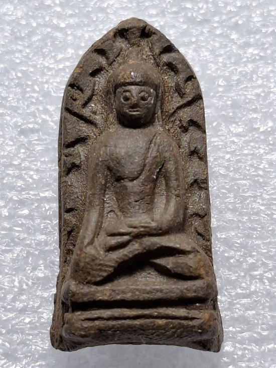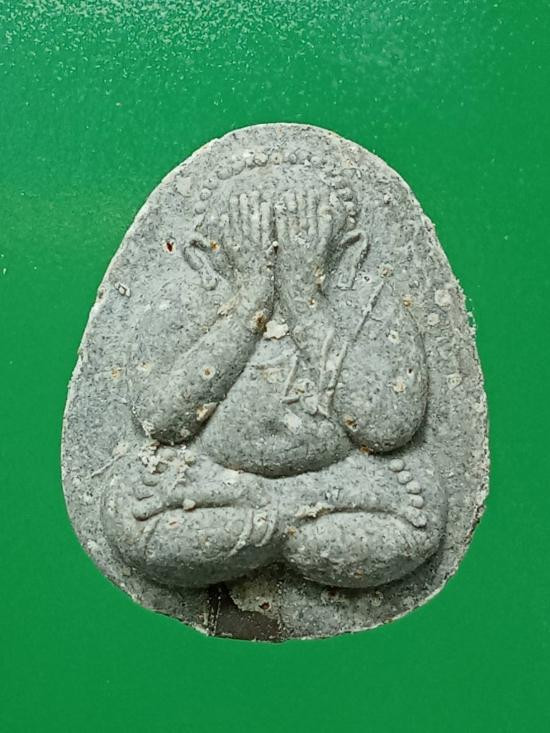 พระเนื้อดินผสมผงกระดูกผี หลวงพ่อเจิม วัดหอยราก พิมพ์ปรกโพธิ์เล็กปี 2499 หลังยันต์ จ. นครศรีธรรมราช |