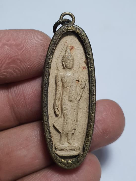 พระลีลา พิมพ์ถ้ำหีบ หลวงพ่อกวย วัดโฆษิตาราม จ.ชัยนาท เลี่ยมเก่า |