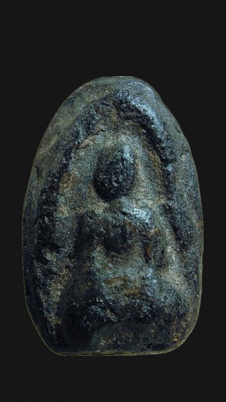 พระสิวลีองค์จ้อย เนื้อดิน หลวงพ่อกวย วัดโฆษิตาราม จ.ชัยนาท ปี2500 พิมพ์ไม่มีย่าม(นิยม) สีผ่าน เนื้อดำ |