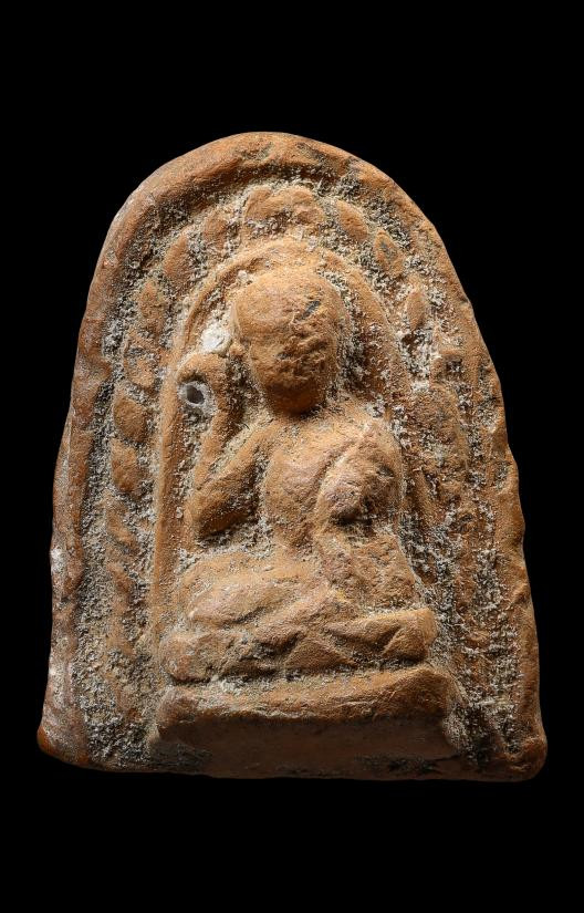 วัดใจ 390.พระพิมพ์ใบโพธิ์สมาธิ เนื้อดินเผา หลวงปู่ดู่ วัดสะแก อยุธยา สร้างปี 2520 |