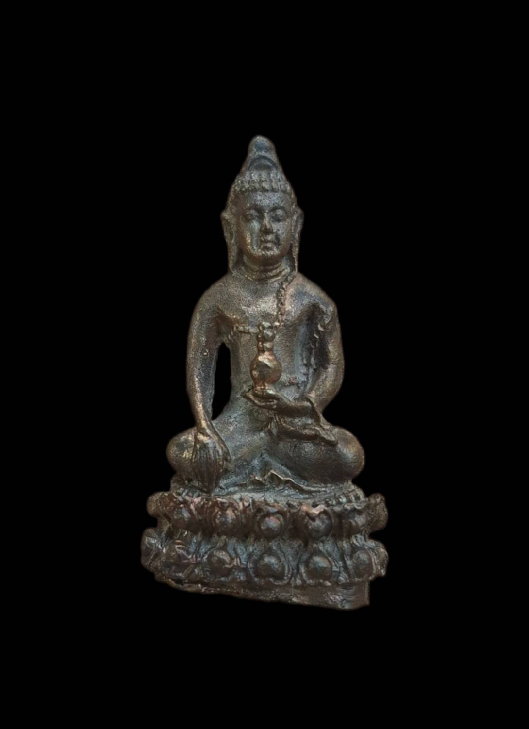 พระชัยวัฒน์ อุ้มบาตร ถือดอกบัว เนื้อตะกั่วเก่า |