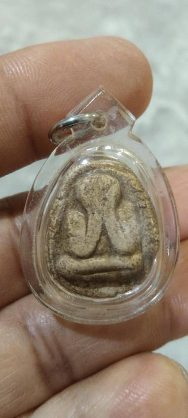 พระปิดตาเนื้อผงไม่ทราบที่ครับ เลี่ยมกันน้ำแล้วครับ |