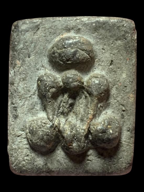 P10 พระปิดตา ด้านหลังเรียบแห้ง มีเนื้อส่วนผสมว่านผงเม็ดกรวดเล็ก ๆ ตามธรรมชาติของพระเนื้อเก่า ไม่ทราบที่ (เคาะเดียวแดง) |