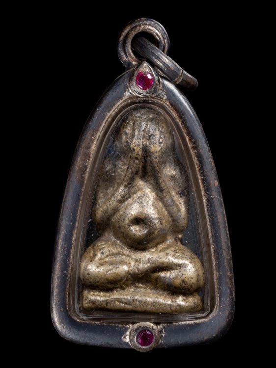 พระปิดตา ผมไม่ทราบที่ เนื้อออกพลายเงิน เลี่ยมเงินเก่า วินเทจ |
