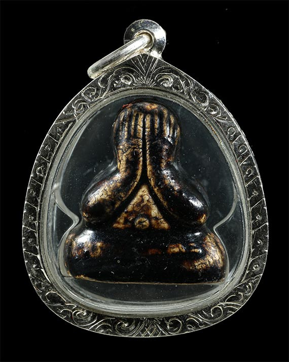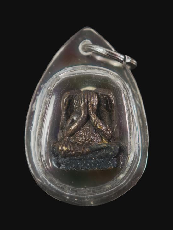 พระปิดตาเนื้อผงจุ่มรักเก่าไม่ทราบที่ |