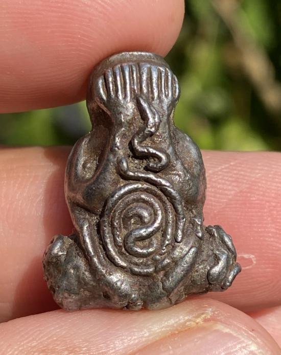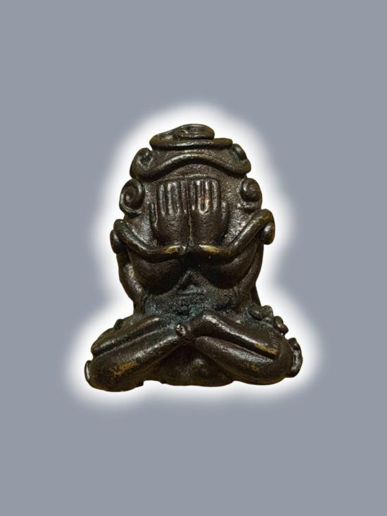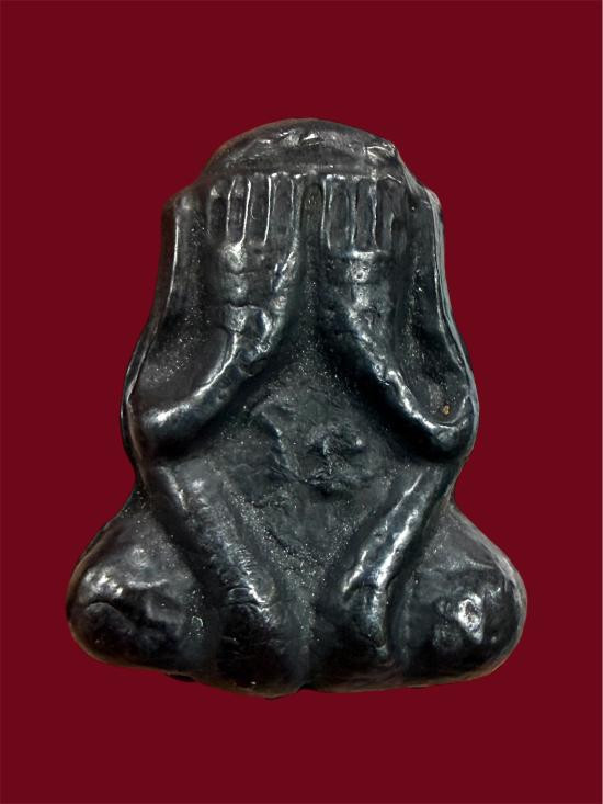 (วัดใจ)พระปิดตา พิมพ์นั่งยอง (ไม่ทราบที่)เนื้อตะกั่ว สภาพเก่ามีอายุ |