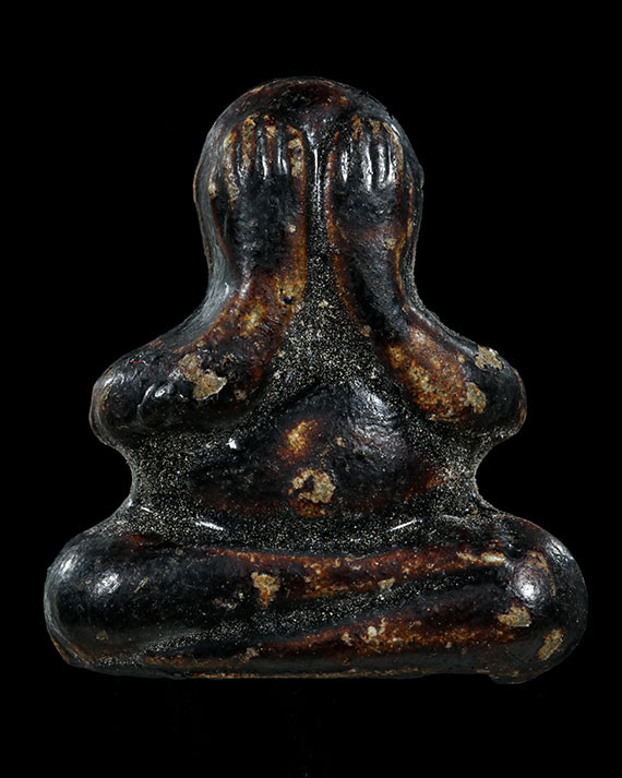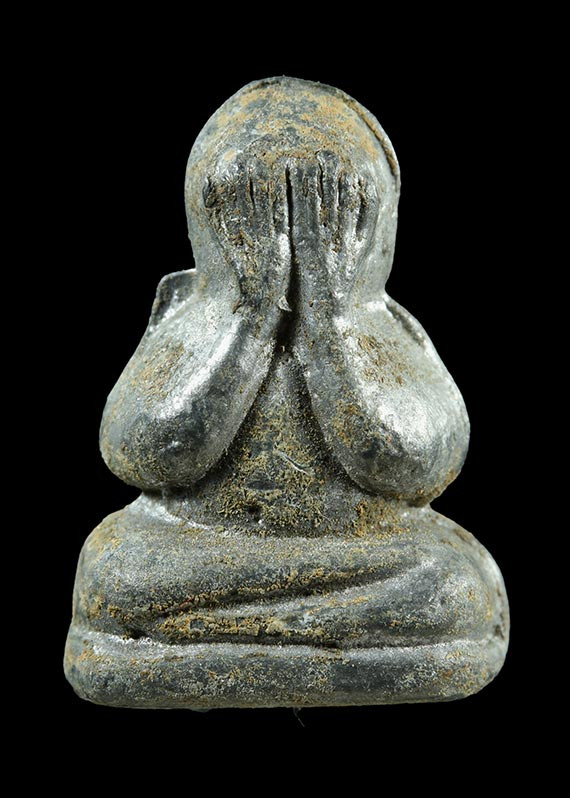 พระปิดตา นั่งบัว เนื้อผงเก่า ไม่ทราบที่ |