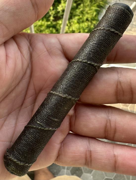 ตะกรุดเนื้อตะกั่วพันเชือกเก่าพร้อมเบี้ยแก้ (เบี้ยแก้เชือกขาดหน่อย) ปรอทไม่วิ่ง ได้มาแบบนี้ |