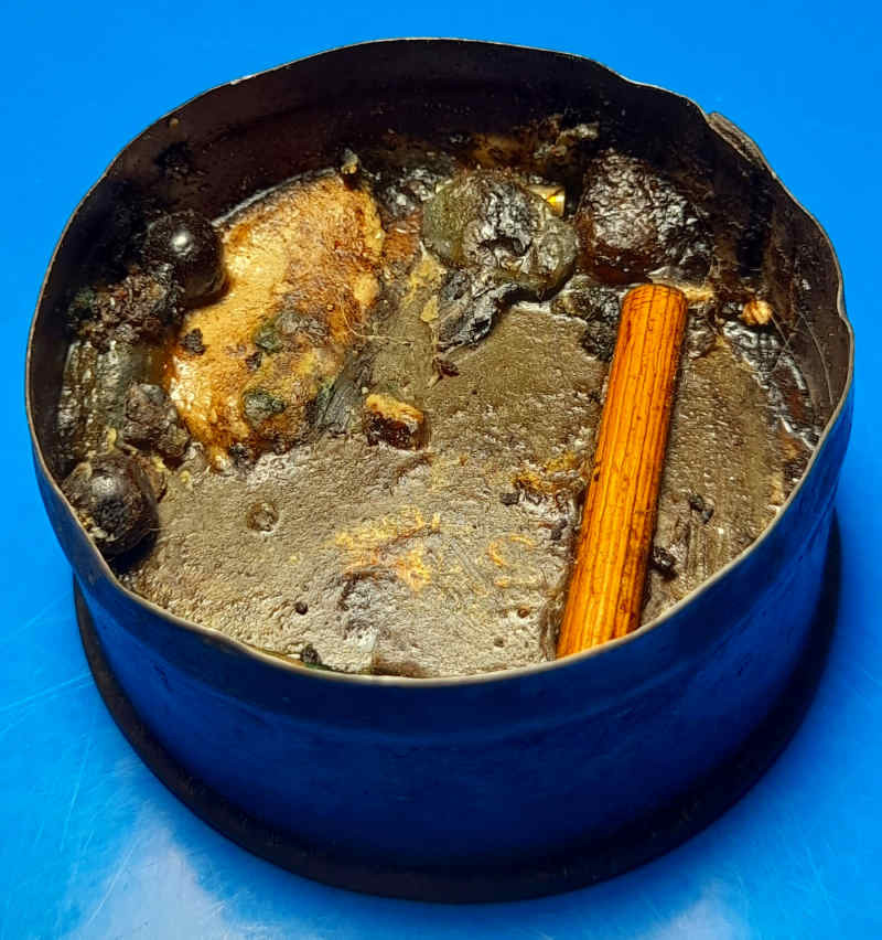 +++((วัดใจเคาะเดียว 100บ.)) ตลับสีผึ้ง สังกะสี เก่า ไม่มีฝา ผมทราบที่ เก่ามากครับ ตลับทรงสูง ครับ เก่าๆๆมีของวิเศษอยู่หลายชิ้น มีตะกรุด หวาย และอีกปลายอย่าวครับผม จัดไปคลาสสิคๆๆครับ +++ |