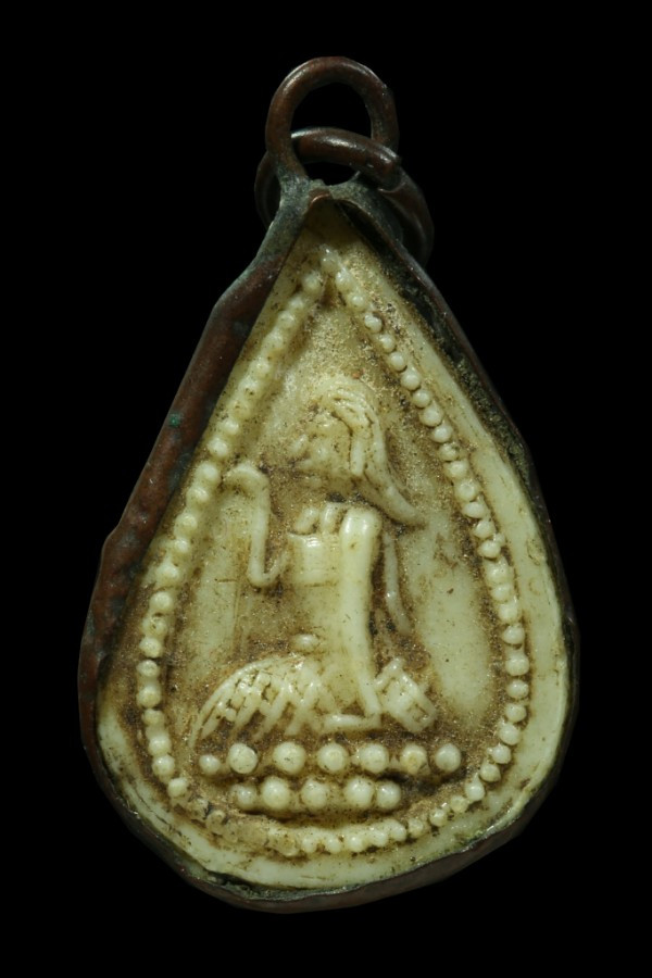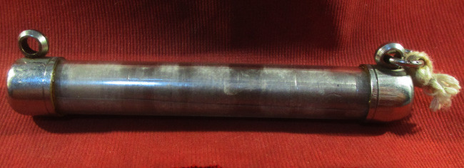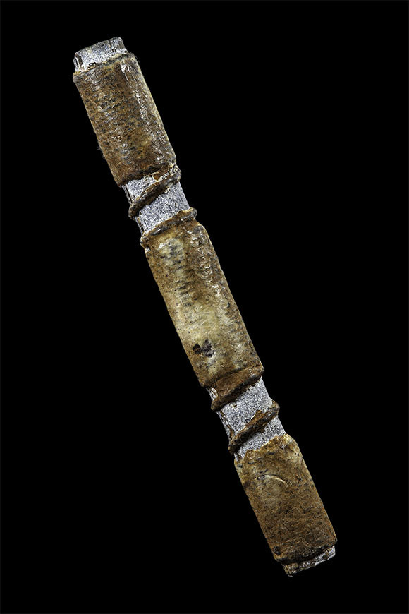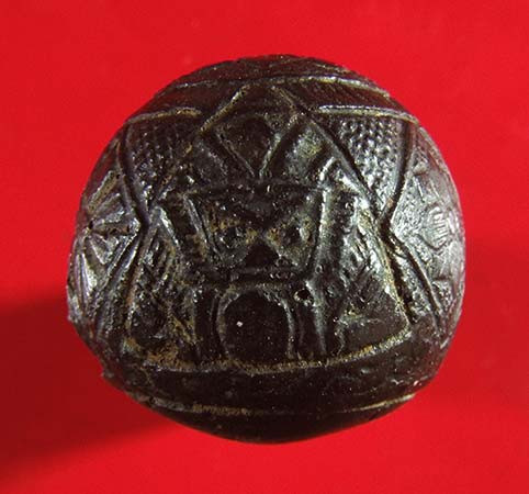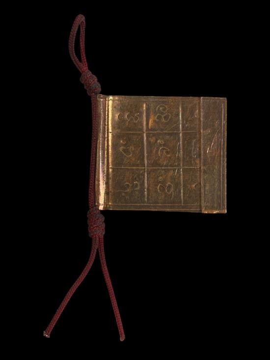 ตะกรุดลงรักตรงกลางเป็นรูร้อยเชือดเก่ามากไม่ทราบที่ |