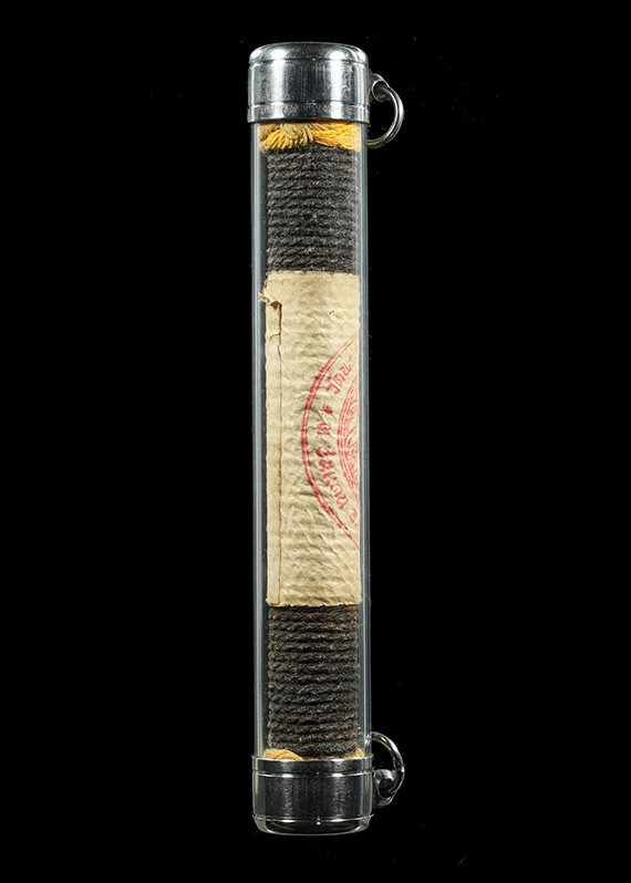 วัดใจ**ตะกรุดถักเชือกเนื้อเงินเก่า*{ จารมือ }*ยาว 2.นิ้ว ไม่ทราบที่....ตามสภาพครับ |