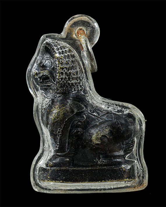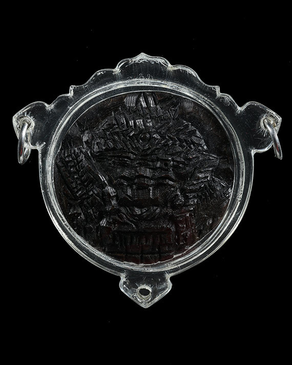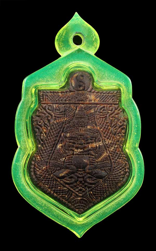 เครื่องรางโชคลาภค้าขาย ขนาดความกว้างประมาณ 6 นิ้ว สูงรวม 8 นิ้ว จารยันต์รอบตัว |