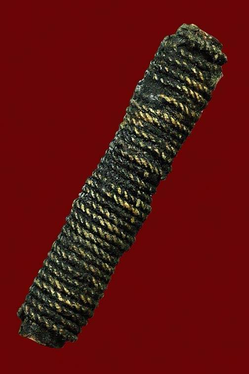 วัดใจ**ตะกรุดถักเชือกเนื้อทองแดงเก่า ยาว 3.5นิ้ว ไม่ทราบที่....เดิมๆครับ |