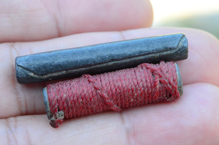 ตะกรุดใบลานถักเชือกลงรักเก่าไม่ทราบที่ |