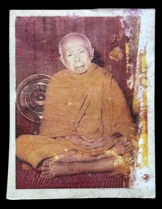 รูปถ่ายหลวงปู่เผือกวัดกิ่งแก้วพัตเดี่ยว กระดาษหนังไก่หลังยันต์แดงไม่ทราบปี |