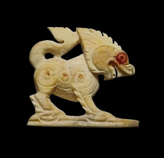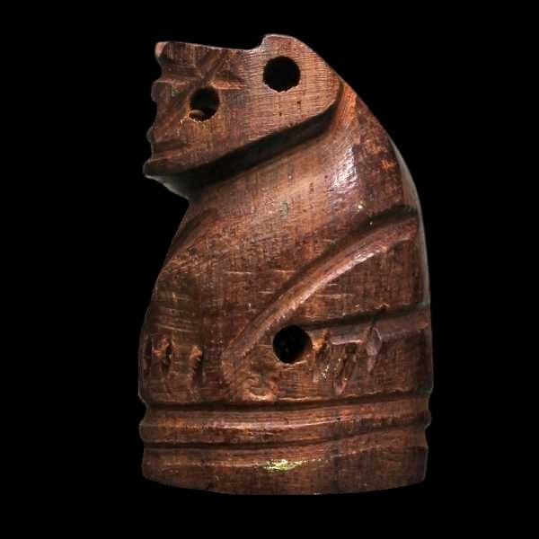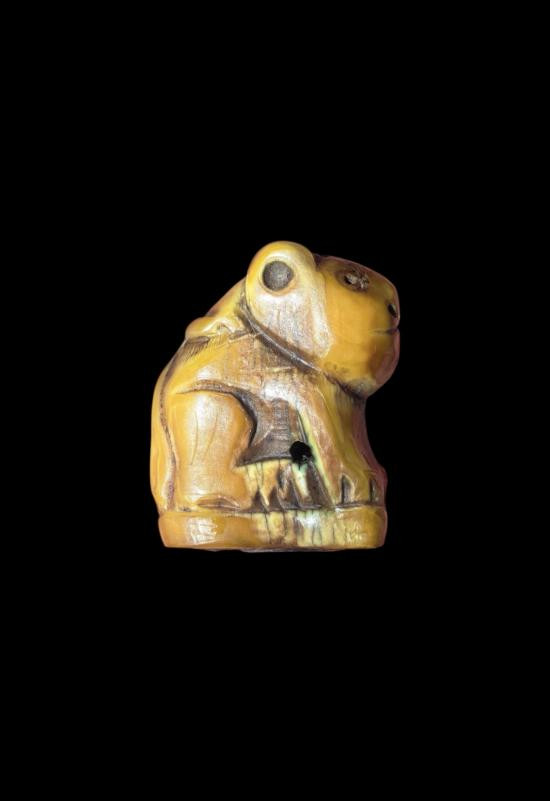 วัดใจ หนุมานนั่่งถืออาวุธ งาแกะไม่ทราบเกจิ สูง 1.5 นิ้ว |