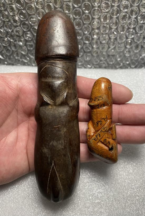 พร้อมกันทีเดียว 2 องค์ครับ พระนางพญางิ้วดำ แกะจากไม้พญางิ้วดำ เนื้อไม้ดำสนิท แห้งแกร่งเก่าตามอายุ พญาไม้งิ้วดำถือว่าเป็นของศักดิ์สิทธิ์ มีฤทธิ์ในตัวเอง เพราะมีเทวาอารักษ์สิงสถิตย์เพื่อบำเพ็ญบารมี |
