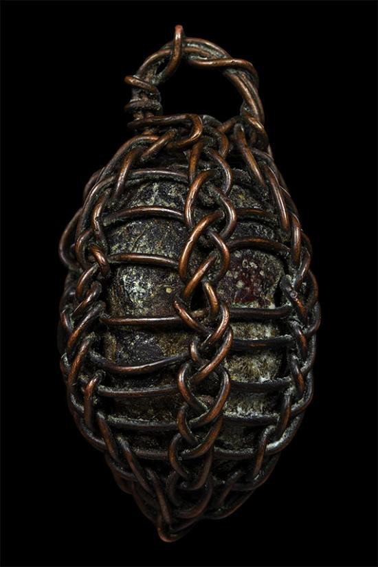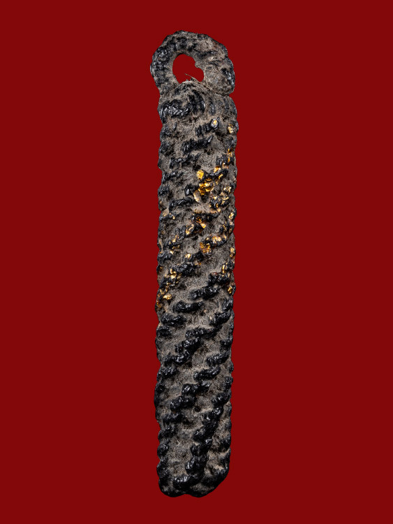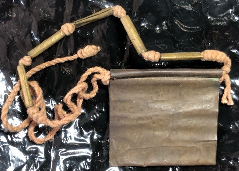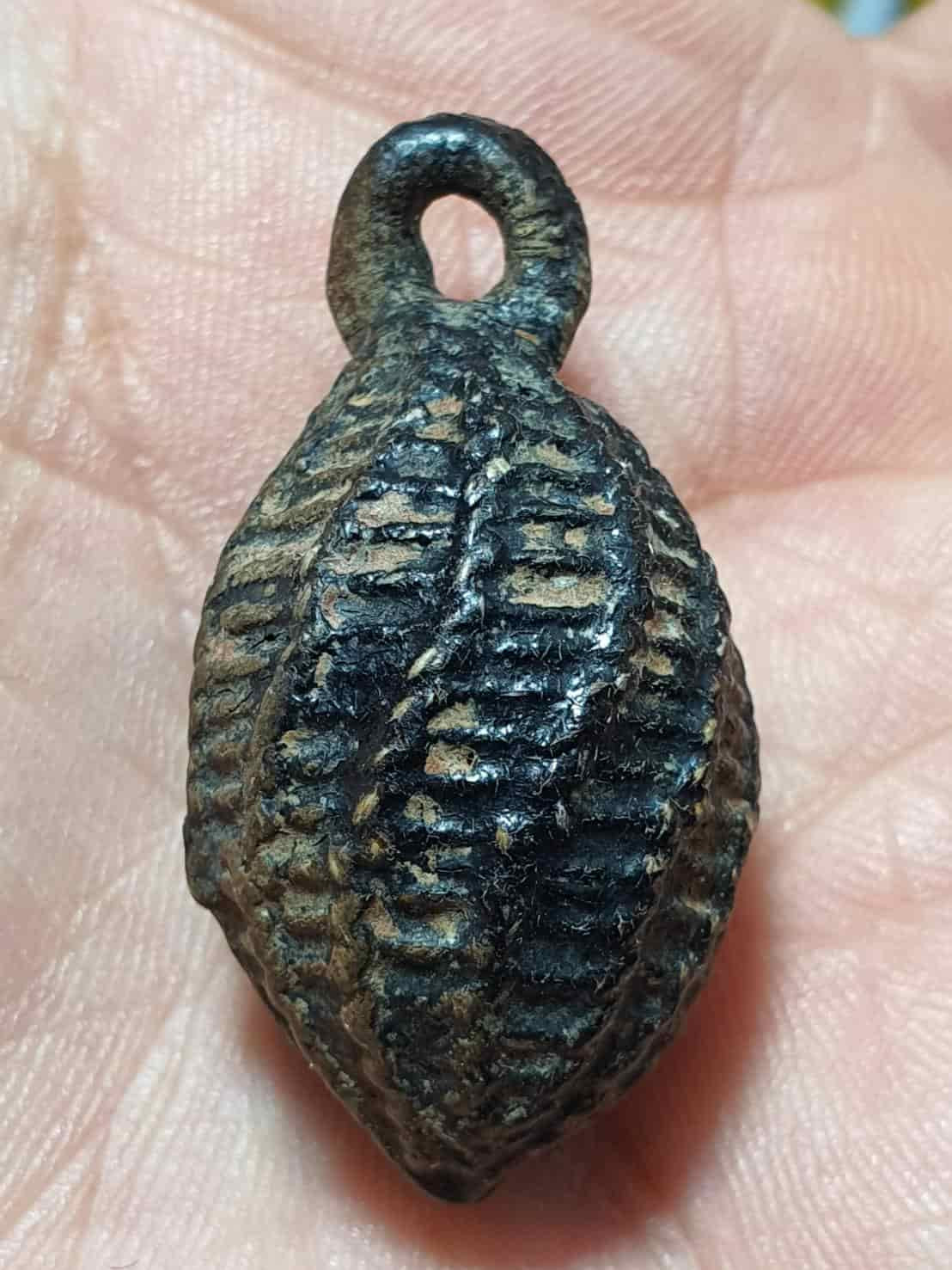 ตะกรุดลูกกลองใบลานถักเชือกลงรักเก่ามากขนาดเล็กไม่ทราบที่ |
