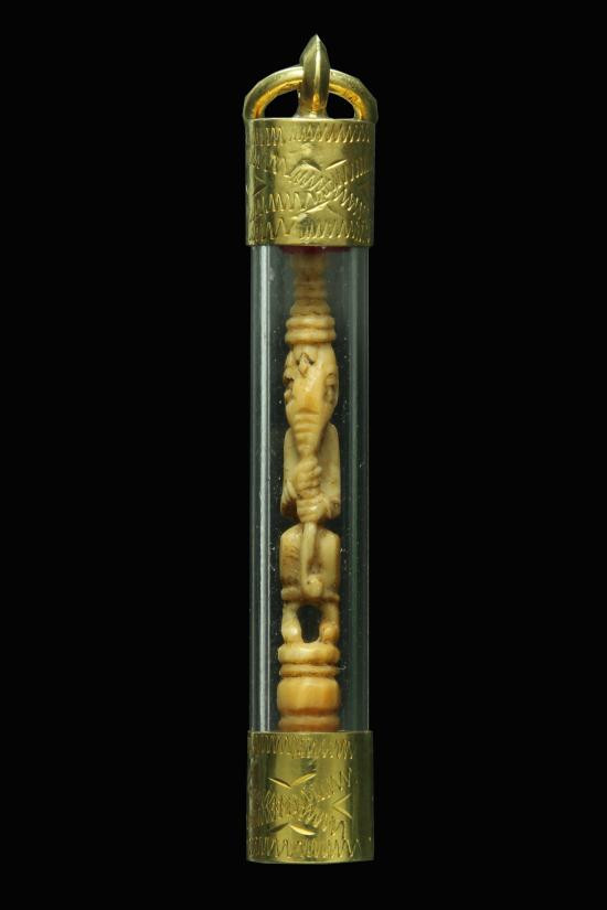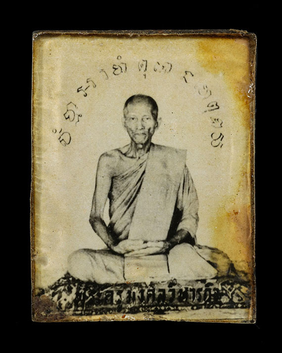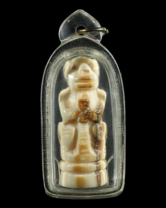 กระดูกแกะรูปเหมือนพระพุทธ ไม่ทราบที่ เลี่ยมเก่า |