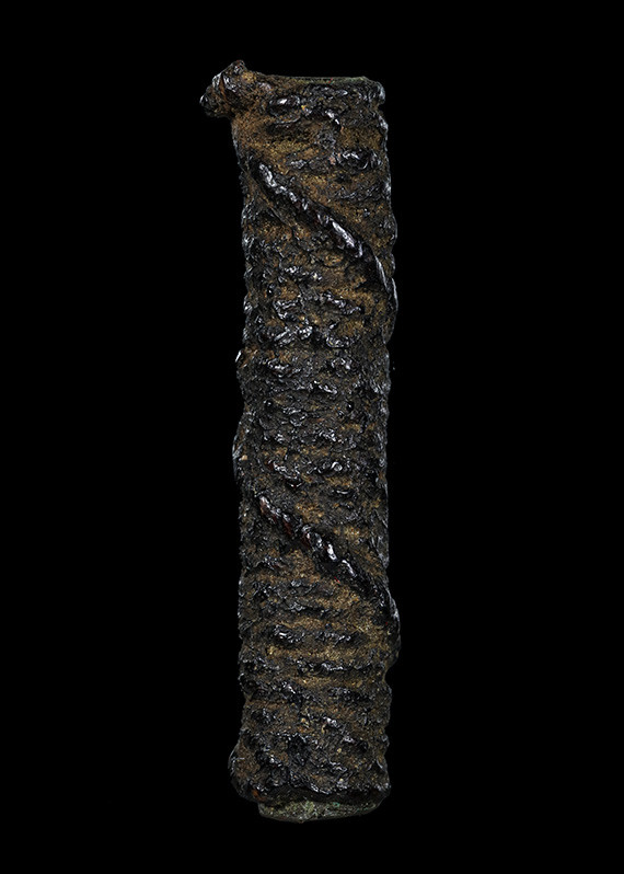 ตะกรุดถักเชือกลงรักเก่า ขนาด 2 นิ้ว ไม่รู้ที่ |