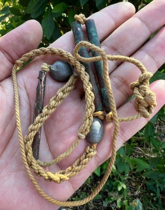 ***วัดใจ 200 *** เครื่องราง ตะกรุดถักเชือกเนื้อสามกษัตริย์ ทองแดง+ทองเหลือง+ตะกั่วเก่า หัวทุบ ยาว 4.7นิ้ว ไม่ทราบที่ วัดใจไม่วัดดวง |