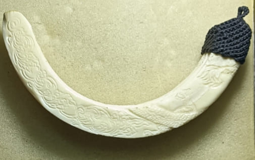 เขี้ยวหมูแกะลายมังกรสวยครับ ไม่ทราบที่ครับ |