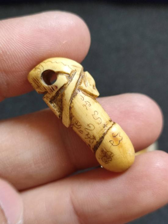@@ ตะกรุด เชือกถัก ปิดทองและน่าจะทารักมา ยาวประมาณ 4 นิ้ว ไม่ทราบที่ครับ @@ |