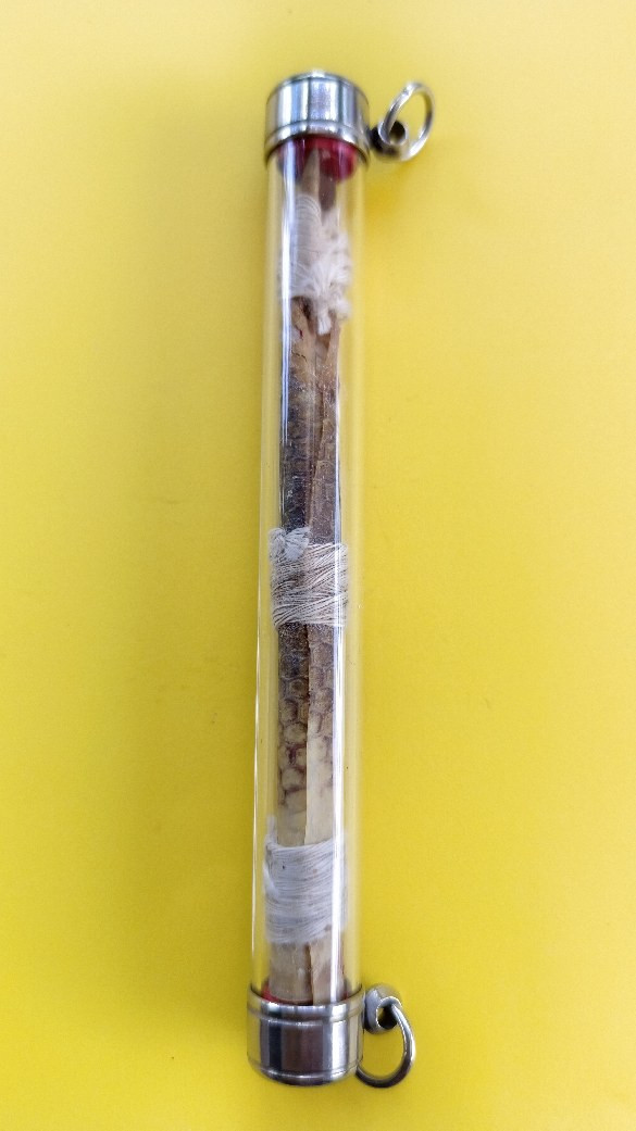 เคาะเดียวแดง.....เครื่องรางตะกรุดถักเชือก ขนาดความยาว 9 เซนติเมตร ไม่ทราบที่ครับ |