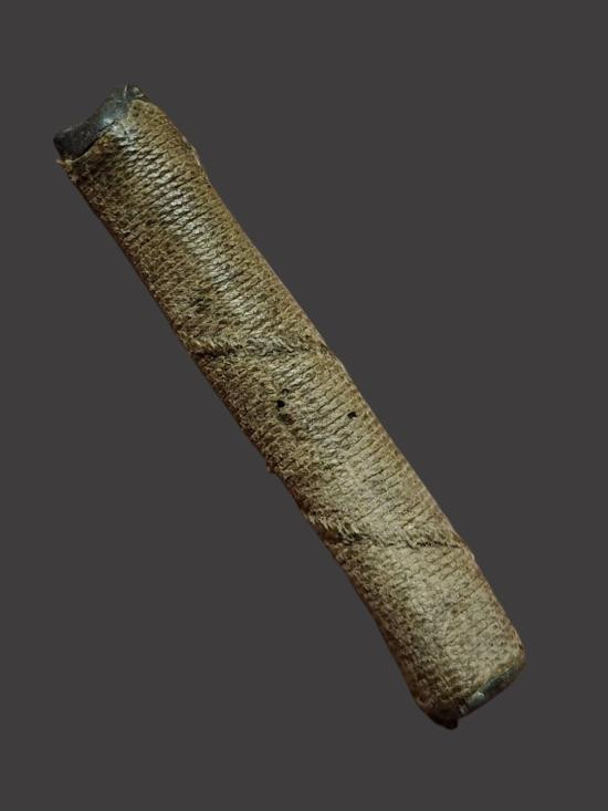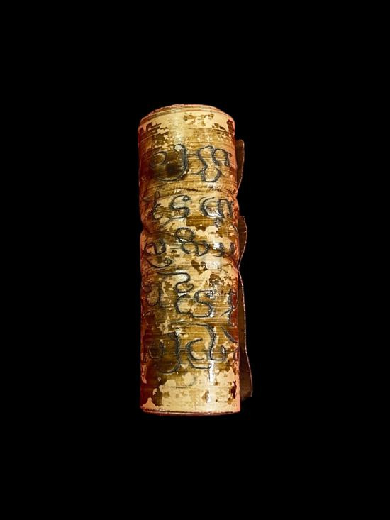 ตะกรุดเนื้อตะกั่วเก่า พันเชือกเดิมๆ ยาว 2 นิ้ว ไม่ทราบที่ |