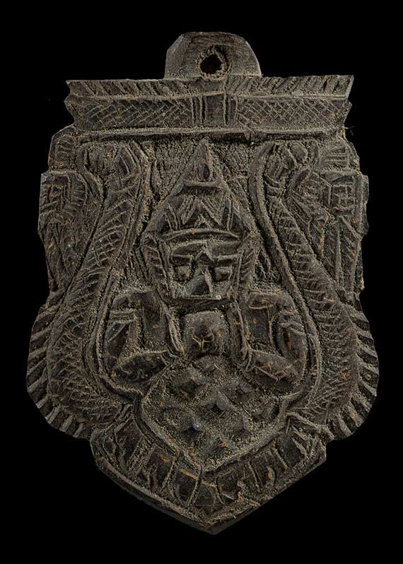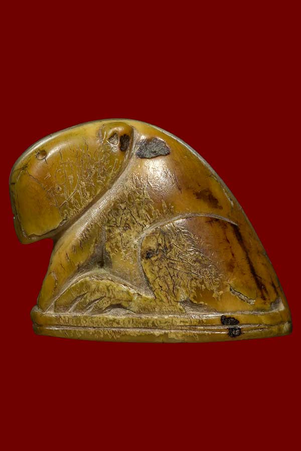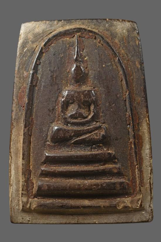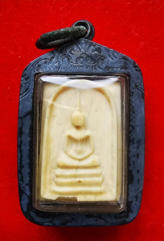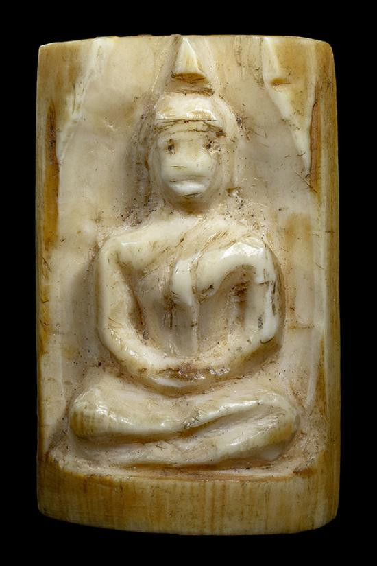 กะลาแกะพระพุทธเก่า ฐานสามชั้น หลังจารมือ ไม่ทราบที่ |