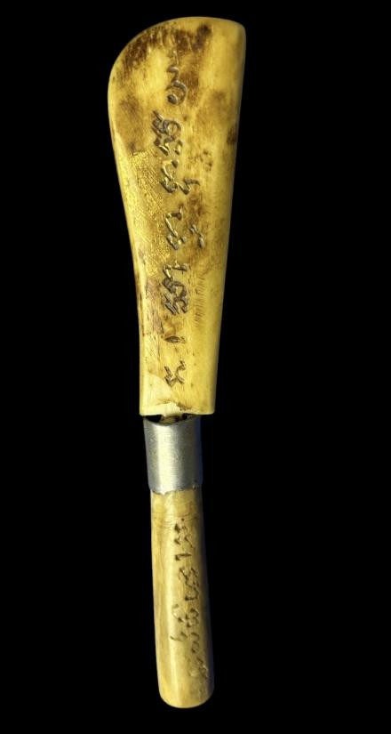มีดงานกระดูกไม่ทราบที่มีจาร พระเหมาบ้านมา |