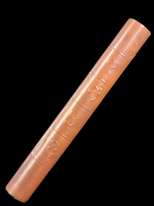 ..100../ ตะกรุดพอกผงคลุกรัก ยาว 3 นิ้ว จารอักขระมันๆ ไม่ทราบสำนัก |