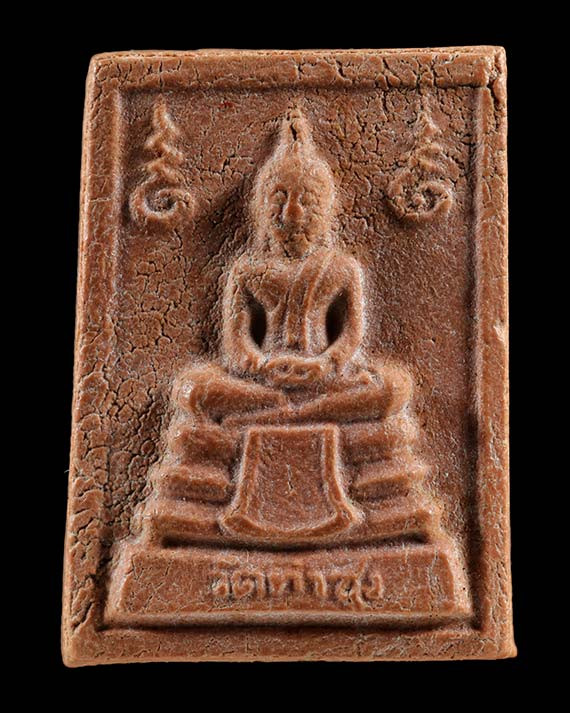 เคาะแดงเดียว ใบโพธิ์ใหญ่ เนื้อดิน หลังยันต์ดวง หลวงพ่อลีวัดอโศ ปี 48 รุ่นไหแตกมาพร้อมกัน 3 องค์ |