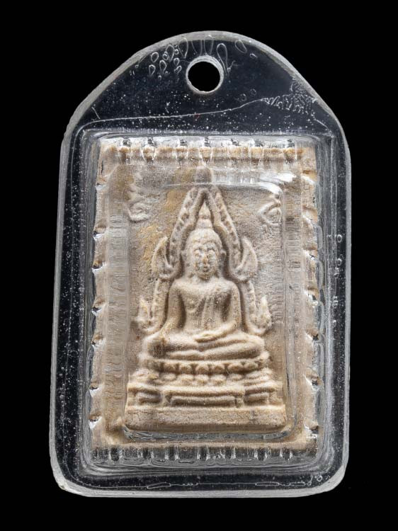 พระขุนแผนพรายแม่พุ่มพวงรุ่นแรก ลายเสือ ด้านหน้าฝั่งพลอย หลังตะกรุดเงิน พร้อมกล่องกำมะหยี |