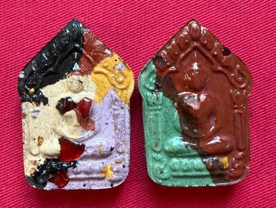( เคาะเดียว 2องค์ สวยๆครับ ) พระพิมพ์ งบน้ำอ้อย เนื้อดินเผา หลวงพ่อลำใย สัญญโม วัดสะแก จ.อยุธยา จัดสร้างประมาณปี 2545 พิมพน์หายากมากครับ ชอบเคาะได้เลยครับ |