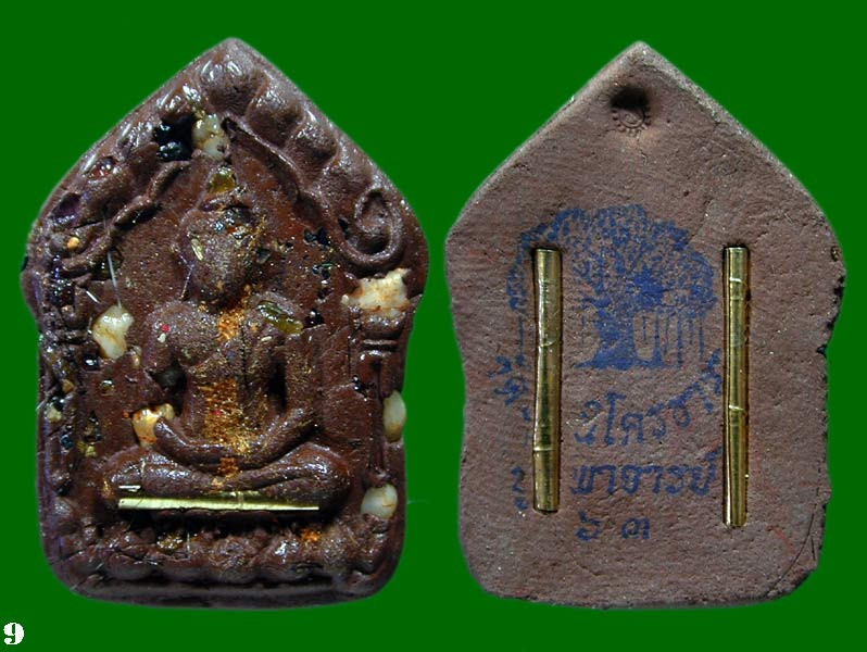 พระผงจักรพรรดิ์ หลวงปู่บุญฤทธิ์ ปัณฑิโต สวนทิพย์ นนทบุรี ด้านหลังฝัง เม็ดพระธาตุ |