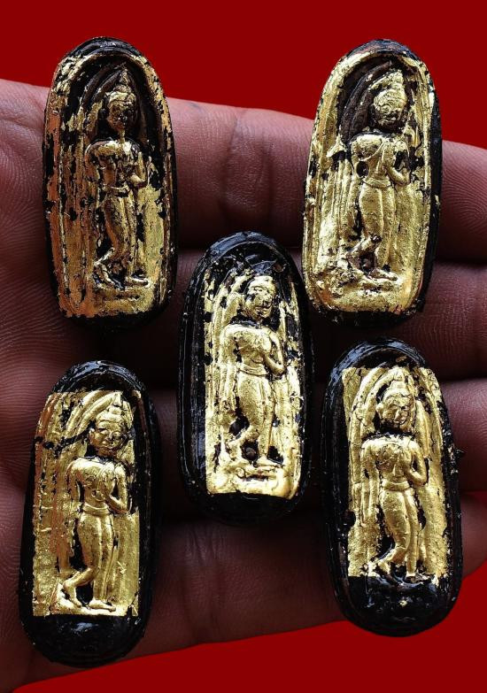 ชุด 5 องค์...พระลีลาทุ่งเศรษฐี รุ่น ปลดหนี้ พารวย เนื้อผงมวลสารลงรักปิดทอง ปี 2560 หลวงปู่รวย วัดคลองขนอน จ.ราชบุรี พร้อมรูปใบฝอยเดิมจากวัด |