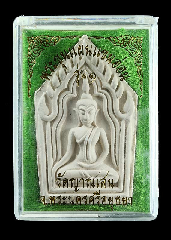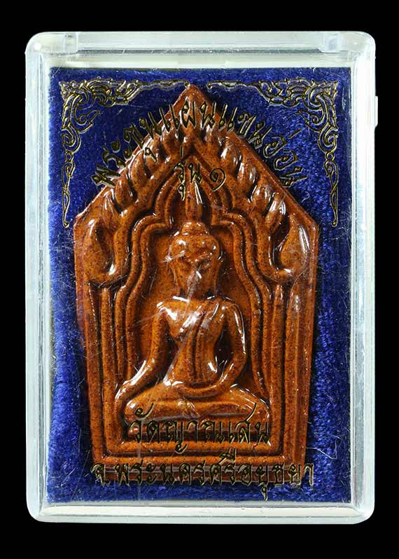 พระขุนแผนซุ้มไผ่นะหน้าทอง รุ่นแรก หลวงพ่อเอียด วัดไผ่ล้อม อ.บางบาล จ.อยุธยา ปี 2544 กล่องเดิม |