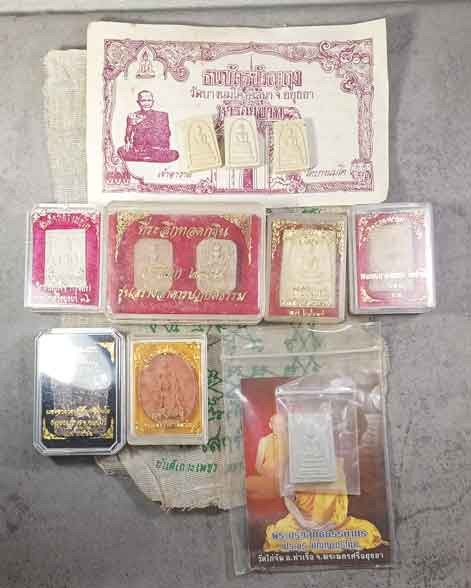 พระผง11 องค์ + ผ้ายันต์ +ธนบัตรขวัญถุง อยุธยา |