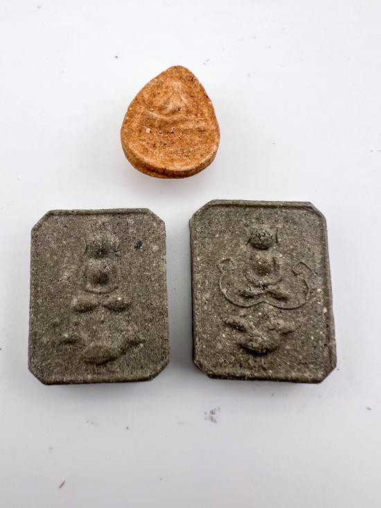 หลวงพ่อชำนาญ วัดชินวราราม พระพุทธทรงไก่มียันต์ พระพุทธทรงไก่ไม่มียันต์ พระปิดตาทรงไก่ รับพระ 3 องค์ |