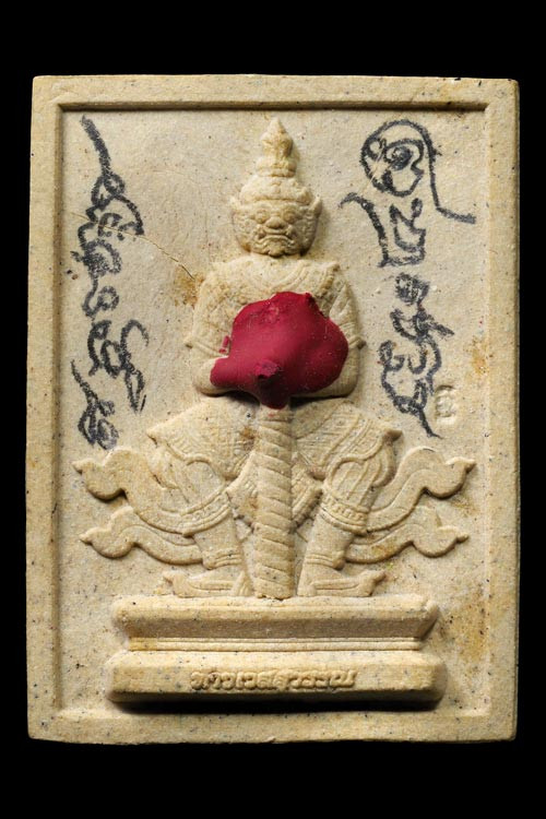 (วัดใจ) ท้าวเวสสุวรรณ เนื้อผงส้มป่อย พิมพ์กลาง หลวงพ่ออิฏฐ์ วัดจุฬามณี จ.สมุทรสงคราม มีเจิมแดง จารดินสอ หน้า-หลัง |