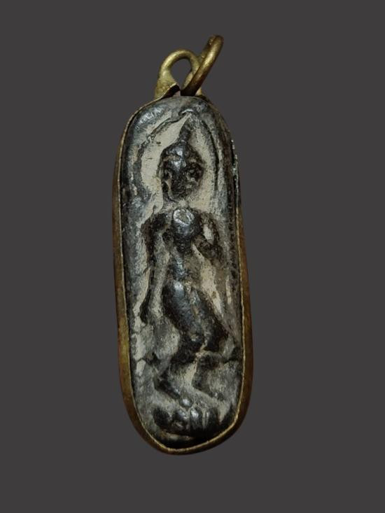 A1163.พระเนื้อดิน ปางลีลา เลี่ยมเดิม ไม่ทราบที่ เคาะเดียวเเดง |